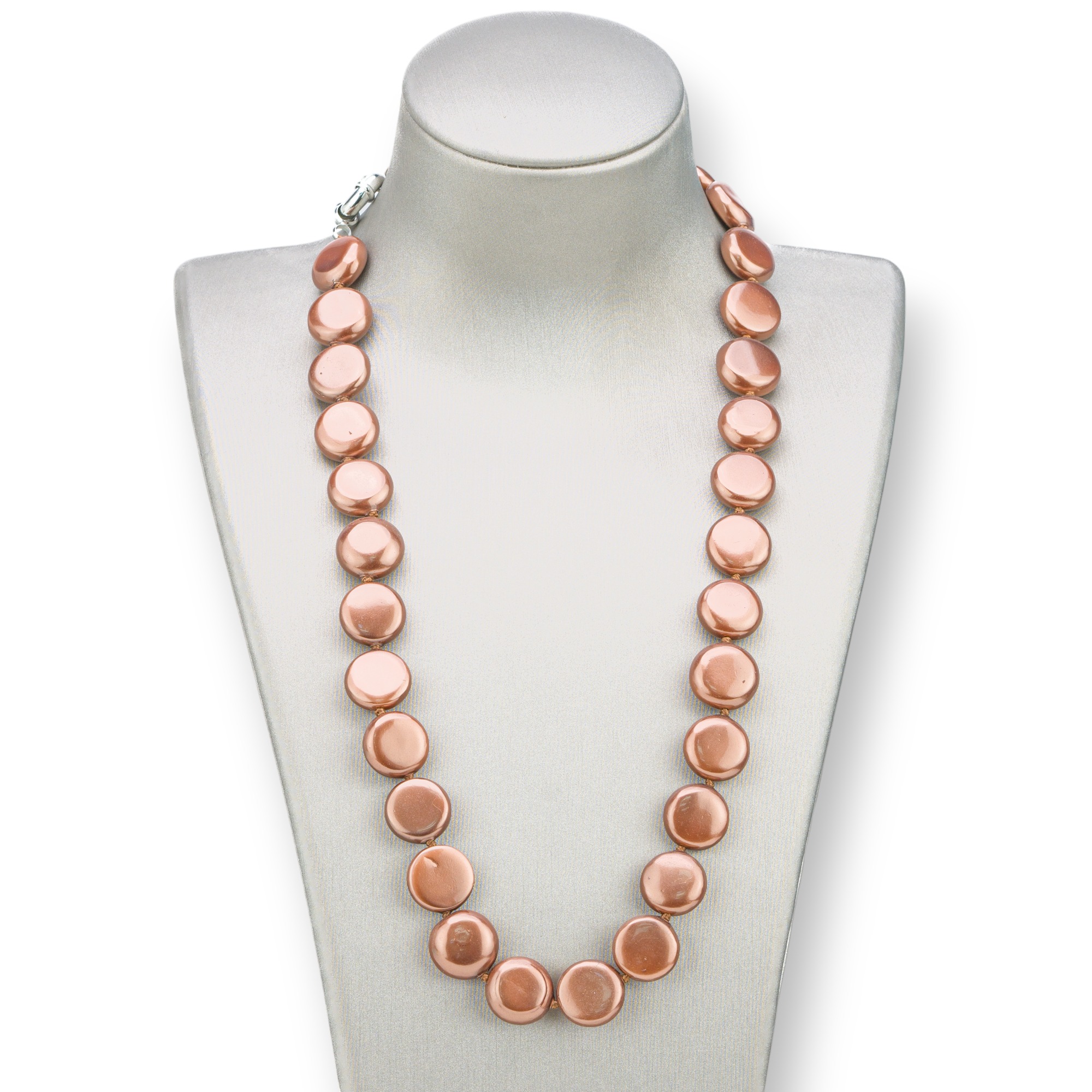 Verpassen Sie nicht die Gelegenheit, diese prächtige 14 mm flache runde mallorquinische Perlenkette mit Messingverschluss 44–49 cm Barockbraun zu tragen und sich von ihrer Schönheit erobern zu lassen!